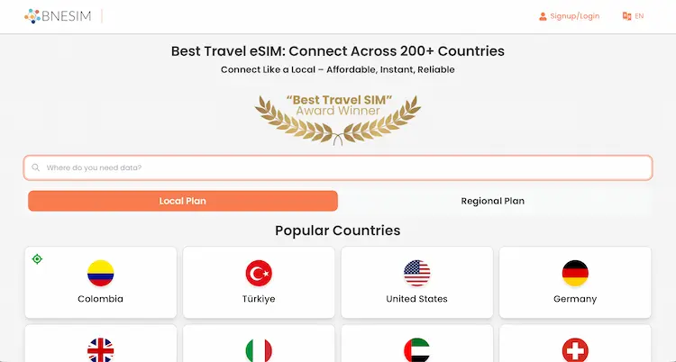 BNESIM is an eSIM data provider operating in over 200 countries and territories worldwide. The service is operated by a Hong Kong-based company that has been in business since 2017.