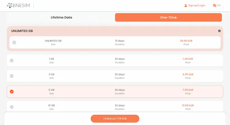 BNESIM offers competitive pricing in European countries and many Asian destinations, particularly when using promotional discount codes. USA pricing is reasonable for smaller data amounts. Latin American countries tend to have higher prices compared to competitors.